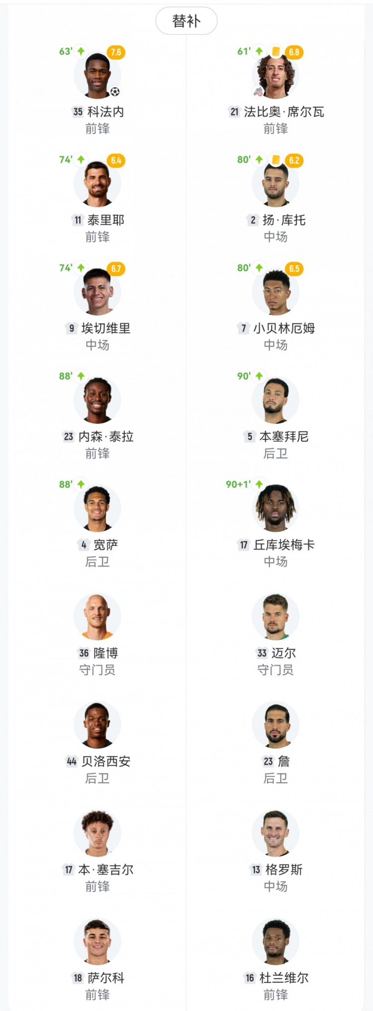 【双方首发及换人信息】