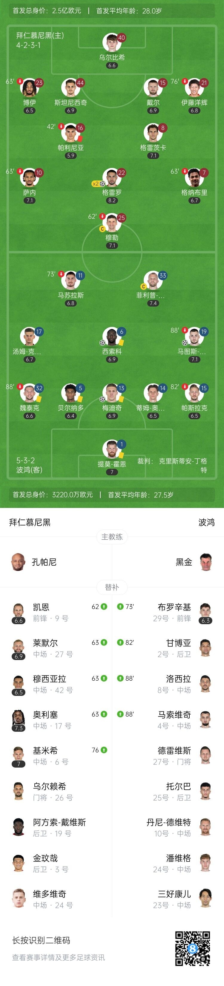 第31分钟,波鸿角球制造混乱,穆勒将球停给对手,梅迪奇二点球抡一脚直挂球门上角!1-2!波鸿迅速扳回一球!↓