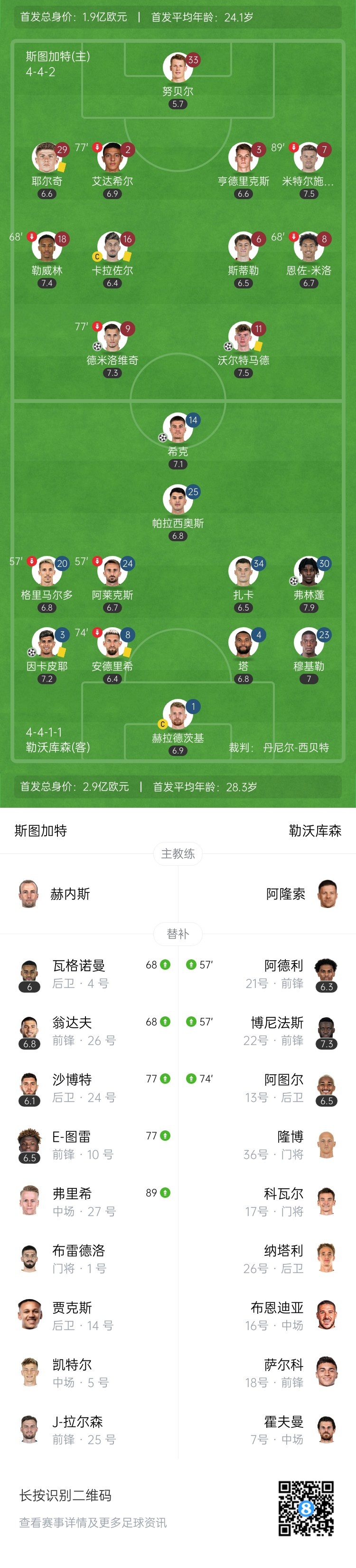 第62分钟,斯图加特右路反击机会,勒威林右路低平球传中,门前包抄的德米洛维奇绝佳机会推射被门将扑出,但皮球打在回防的扎卡身上还是入网,斯图加特3-1领先↓