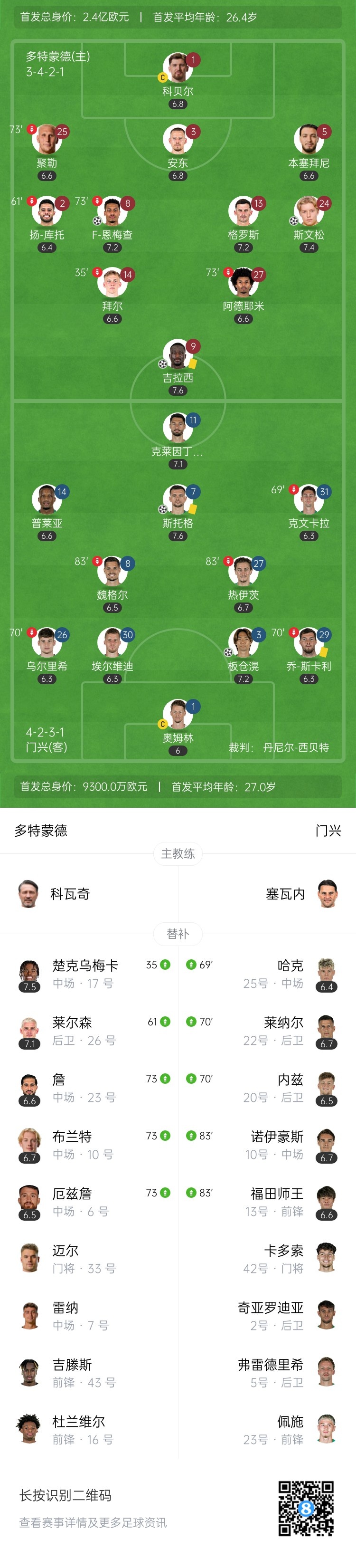 全场比赛结束,多特蒙德3-2门兴。