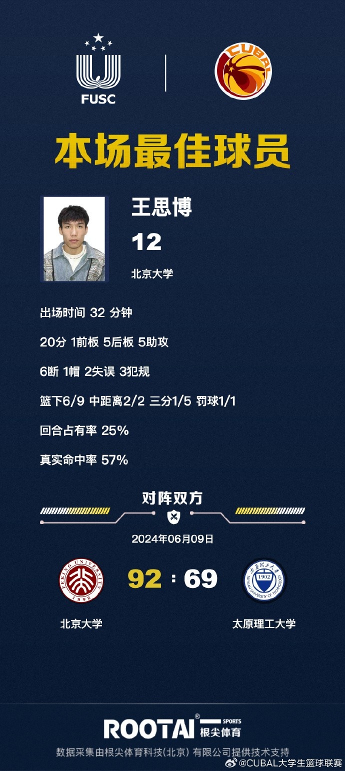 6月9日讯 CUBAL全国八强赛首回合,北京大学主场迎战太原理工大学。