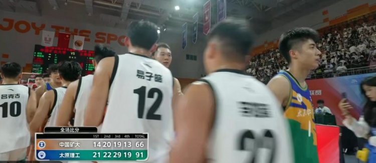 末节比赛,太原理工轻松获得20分以上优势,此后双方展开拉锯战,太原理工继续冲击内线拿分,中国矿大连投带罚苦苦支撑,张凯飞强攻打中,比赛失去悬念。最终,太原理工91-66大胜中国矿大,挺进决赛。