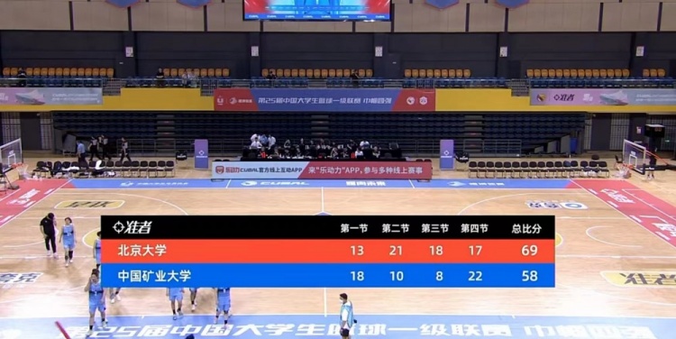 第四节,北大先拿4分将优势扩大到20分,中国矿大轮番冲击内线连投带罚苦苦支撑,王珍抢断反击得手,中国矿大里突外投拿分延续希望,北大强攻内线连造杀伤罚球保持领先。中国矿大苦苦追赶无果,最终,北大69-58击败中国矿大,取得本届比赛的季军。