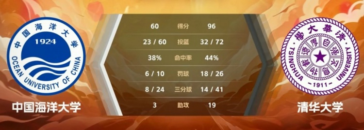 末节比赛,双方都打得相对放松,很多球员也都获得了上场的机会,不过中国海大依旧没有获得任何迫近比分的机会,分差已经达到了四十分以上,最终清华大学96-60大胜中国海大。
