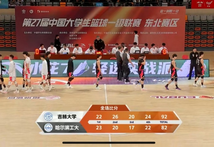 末节决战,刘滨畅和林晓峰外线连续发炮再次拉开双位数领先,辛泽林强打2+1止血,周鑫造杀伤再次追至个位数分差。暂停回来,周鑫反击扣篮再追2分,但无奈哈工大连续失误,罗奕桐接连三分砍下8分迅速回应,吉林大学拉开17分领先,随后哈工大无力回天,最终吉林大学92-82力克哈工大,晋级8强。