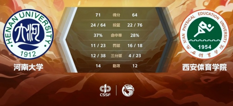 末节开局史航和程勃轩对飙起三分拉开僵持大战,拉锯战中河南大学一直占据上风,米卓节中再中三分一度拉开11分的优势,孟硕回敬三分维持追分希望,但河南大学的稳定输出确保10分左右领先掌控比赛。这之后河南大学短暂哑火奈何西安体院无法抓住机会,追至6分之后又无法得分,河南大学将优势保持到最后。最终,河南大学击败西安体育学院迎来三连胜。