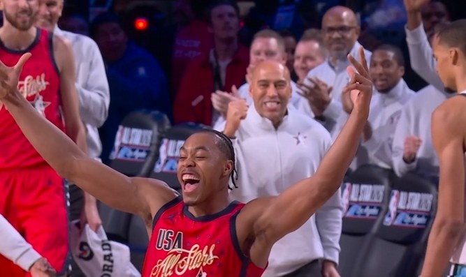 世界队:文班亚马14分6板3帽、唐斯10分1板、阿夫迪亚5分2助、西亚卡姆4分1板1助、东契奇2分2助、申京4板2助、穆雷2板4助、约基奇2板、鲍威尔1助