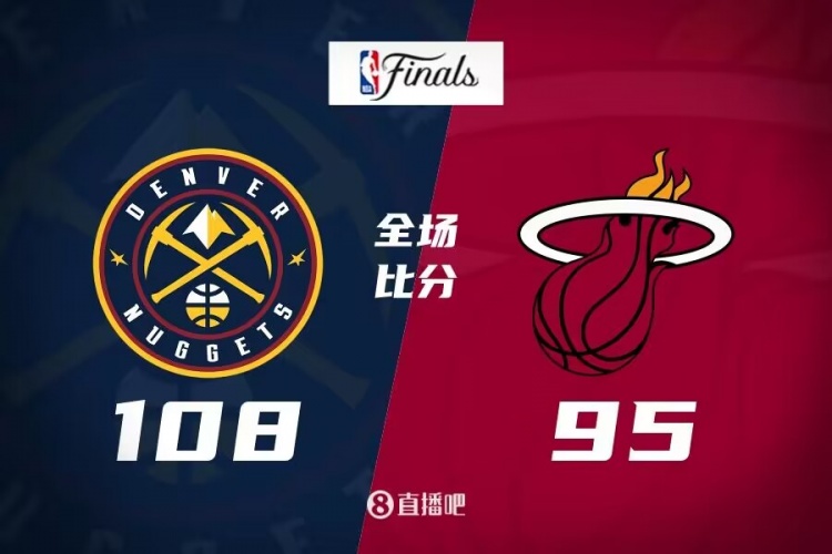 下半场,小波特上来接连空切篮下轻松取分,掘金一波10-4小高潮终于拉开双位数领先,乐福接连外线发炮连砍9分紧急止血,但约基奇有攻有传强势回应再次稳住局势,调整篮筐平衡小插曲过后,戈登又是连得7分帮助掘金保持住双位数领先。末节,约基奇接连吃到2犯累计5犯无奈下场,热火一度追到差5分,但穆雷和杰夫-格林接连三分稳住局势,热火接连失误,布朗里突外投连砍8分直接带走比赛,最终掘金108-95力克热火,大比分3-1拿到冠军点。