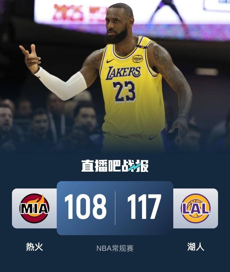 比赛上来,两队就大打对攻战,场上比分也是交替领先,首节合计拿到了72分,其中希罗5中5高效砍下16分,次节双方的命中率都出现下滑,但显然湖人的表现更糟半节只拿到7分,热火一波10-0的攻势将分差拉开到两位数,半场结束时湖人落后12分;下半场回来,热火的进攻出现了大问题,单节只拿到19分,湖人则在詹姆斯的带领下发起反扑,三节结束时分差仅剩2分,末节湖人的势头还在继续,他们一波9-0的小高潮成功实现反超,关键时刻詹姆斯连拿七分直接收比赛,最终湖人力克热火结束三连败。