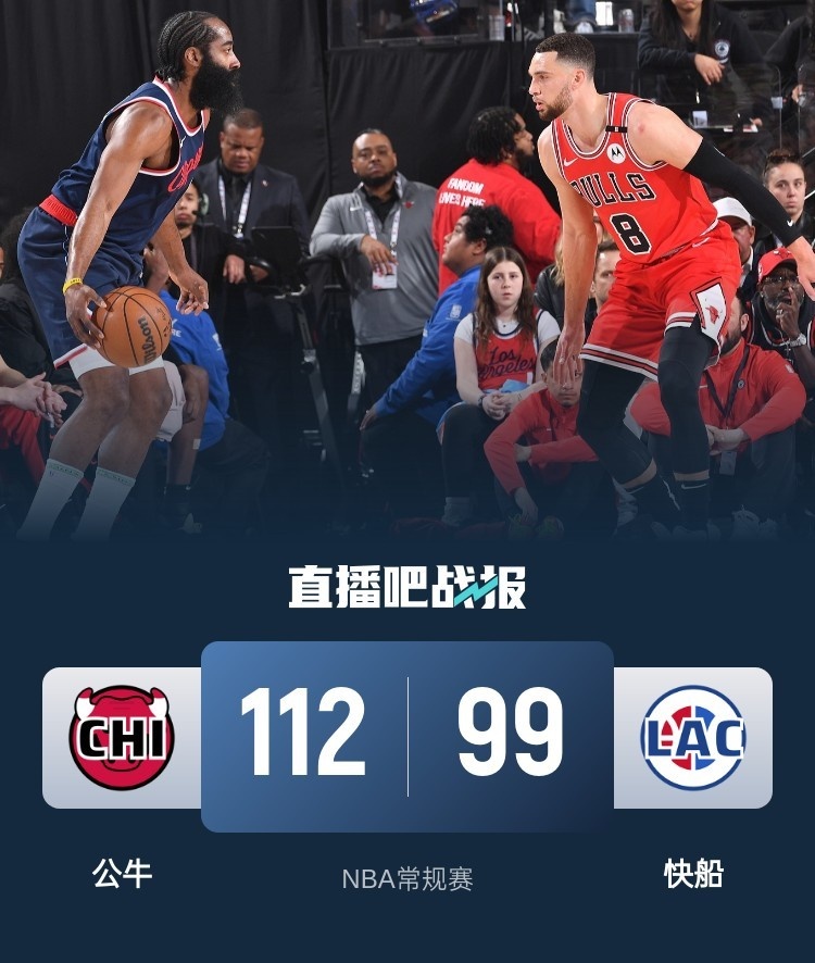 首节之争快船迟迟找不到状态,比赛过半的情况下仅得5分导致局面落入被动;不过公牛虽然取得领先但整体表现谈不上好,这也给了快船在第二节扭转局面的机会。次节快船上来就是一波19-5的攻势迅速扭转局面,首节仅得18分的他们也在这一节回暖砍下32分并反超2分进入下半场。休息归来快船的状态如同过山车一般再度跌落谷底,他们第三节16分的总分仅比拉文这一节的15分多1分,赖以生存的防守则被公牛锤爆,以拉文为首的公牛连续送上一波流在第三节砍下36分并带着18分优势进入第四节;末节公牛虽然6分钟里仅得6分但快船也没能掀起攻势制造威胁。最终,快船主场不敌公牛结束4连胜,公牛则结束5连败。