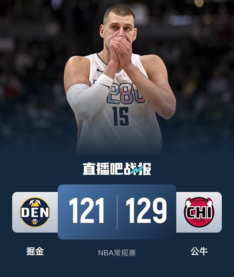 首节之争双方进攻效率都很高一路高效对攻,掘金后来居上反超但也无法拉开比分;次节之争双方持续拉锯,掘金依旧是占据上方的一方但无力拉开比分,不过约基奇在公牛内线肆虐半场10投全中拿下21+5+8,掘金带着7分领先进入下半场。休息归来公牛在开局最多落后10分的情况下送出11-0的攻势上演弯道超车,不过约基奇依旧不可阻挡末段连拿7分及时止血;然而末节约基奇开局刚下去休息,掘金就被公牛揍了一波13-0直接拉开两位数分差,掘金虽然找回手感但已经无力阻止起势的公牛稳定拿分。最终,公牛主场力克掘金拿下比赛。