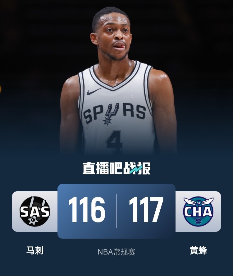 比赛上来,黄蜂就率先进入状态打出8-2的开局取得领先,整个第一节马刺的进攻表现都不太好,分差也是被拉开到了两位数,次节黄蜂有进一步扩大领先的趋势,好在是马刺回应一波15-4稍稍止血,半场结束时黄蜂领先12分;下半场回来,马刺虽然有反扑的势头但黄蜂总能及时给出回应,分差一直在十分左右,末节没有放弃的马刺连中三分将比赛悬念打了回来,关键时刻福克斯福克斯连中两球完成反超,布里奇斯命中准绝杀三分,福克斯再中绝杀三分可惜超时,最终黄蜂险胜马刺止住六连败。