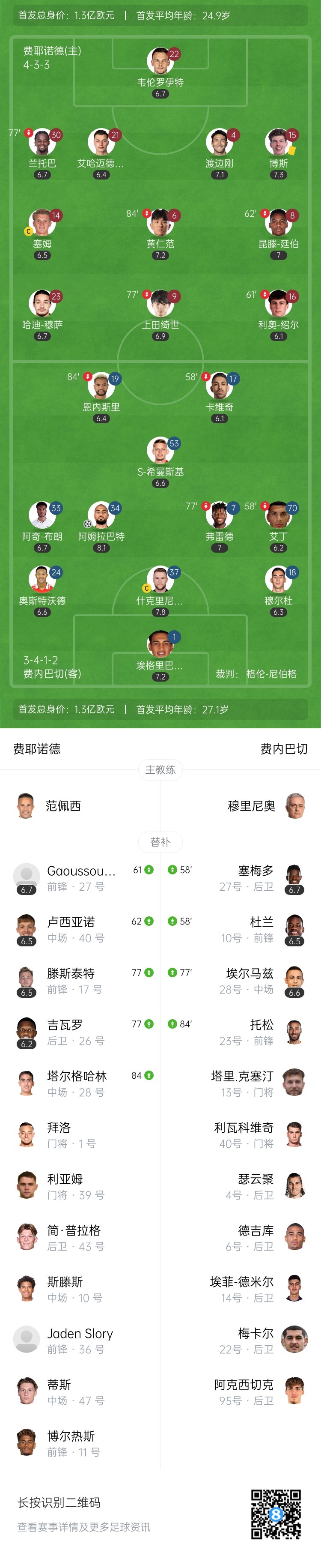 下半场补时5分钟。最终全场比赛结束,费耶诺德2-1费内巴切。