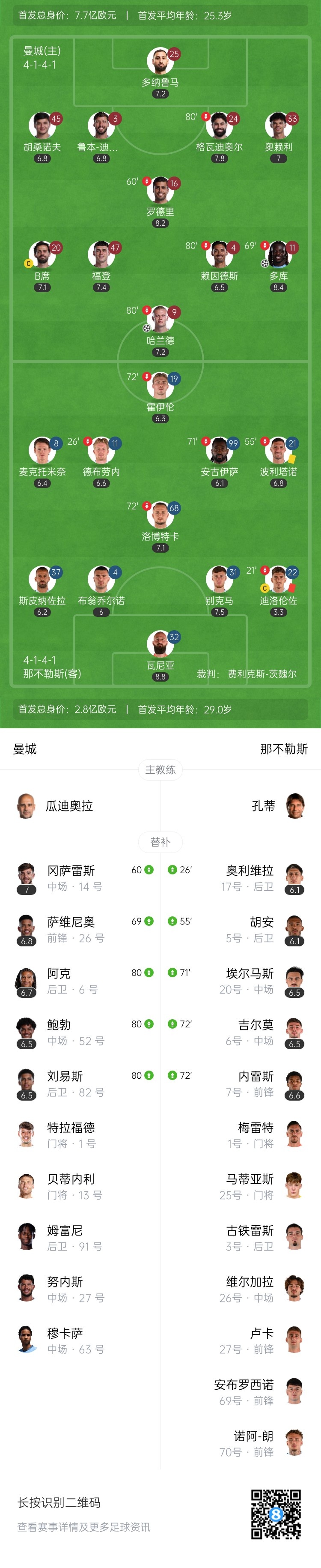 第26分钟,少打一人的那不勒斯被迫战术调整早早换下德布劳内↓
