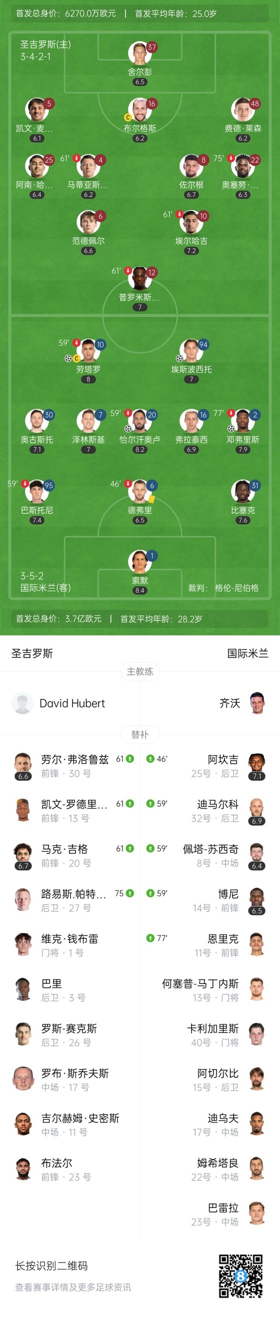 下半场补时3分钟,圣吉罗斯0-4国米。