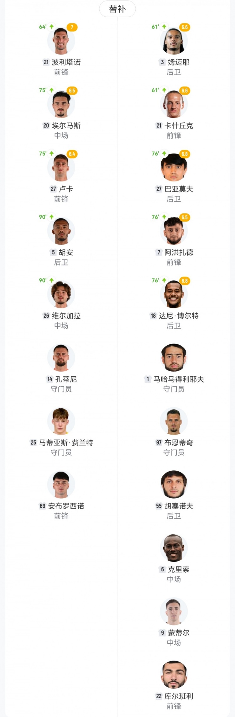 【双方首发及换人信息】