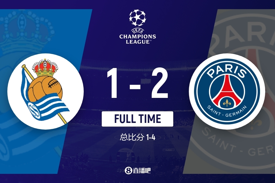 全场比赛结束,巴黎2-1皇家社会。