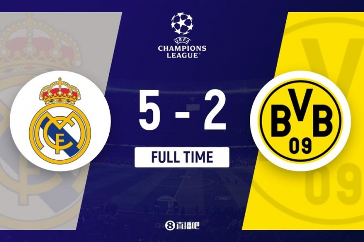 下半场补时4分钟。最终全场比赛结束,皇马5-2多特。