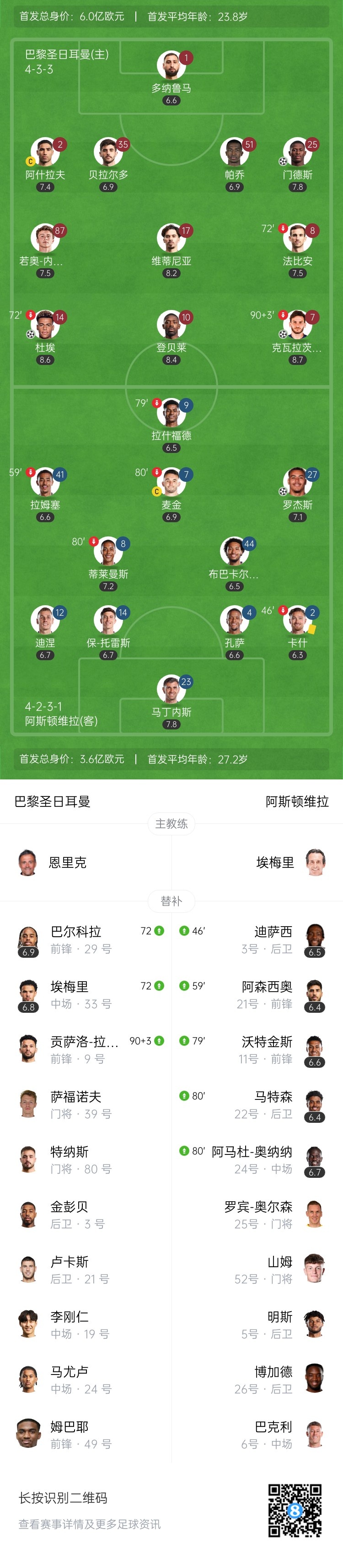 第35分钟,努诺-门德斯中线附近被麦金抢断,拉什福德直塞禁区,蒂莱曼斯插上横扫后点,罗杰斯包抄破门!维拉客场1-0领先巴黎↓
