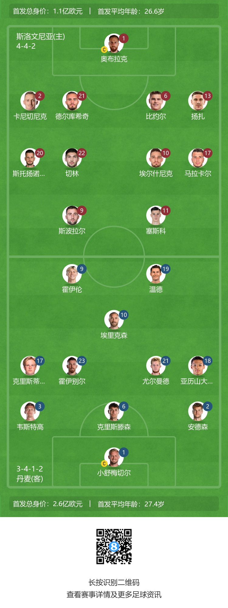 第76分钟,斯洛文尼亚的角球,前点被解围!球弹到弧顶左侧,扬扎直接起脚远射!皮球折射窜入球网!斯洛文尼亚持续攻势收到成效,1-1扳平丹麦↓