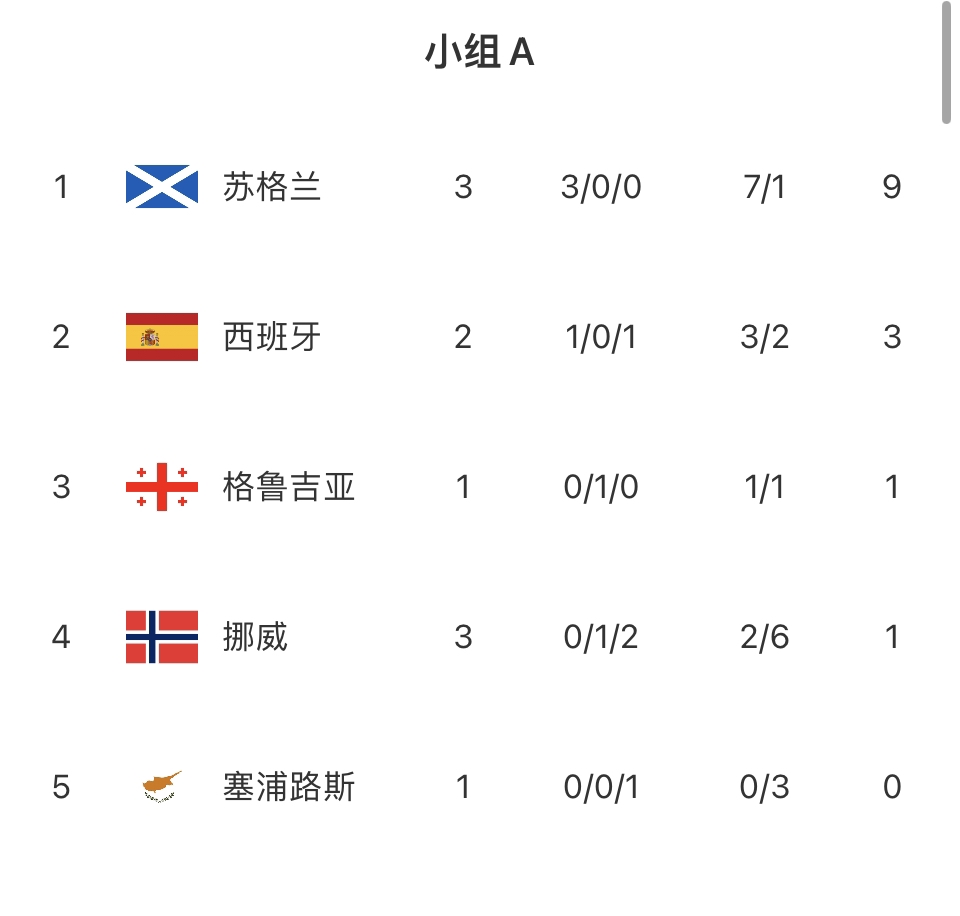 A组积分榜↓