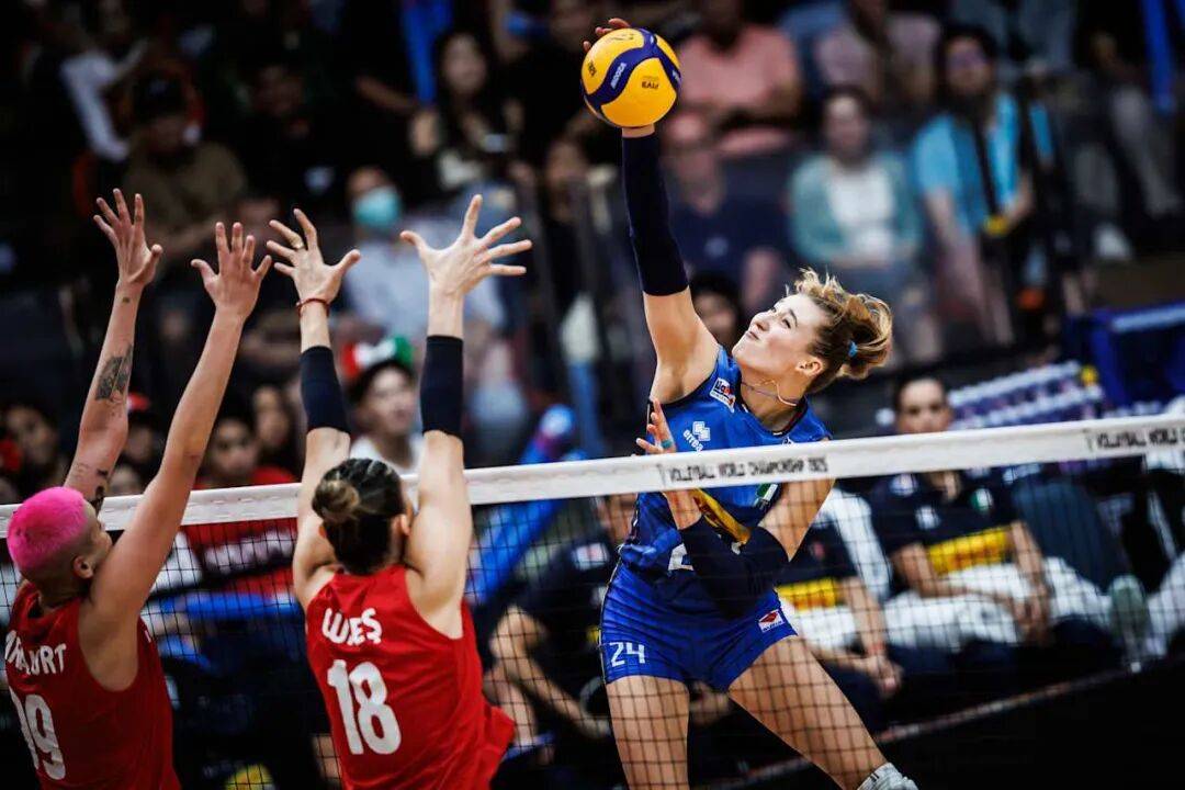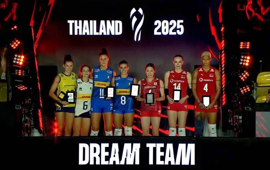 至此,本届世锦赛最佳阵容情况如下【MVP】奥罗(意大利)【最佳主攻】石川真佑(日本)、加比(巴西)【最佳副攻】艾达(土耳其)、达内西(意大利)【最佳接应】瓦尔加斯(土耳其)【最佳自由人】德吉纳罗(意大利)。