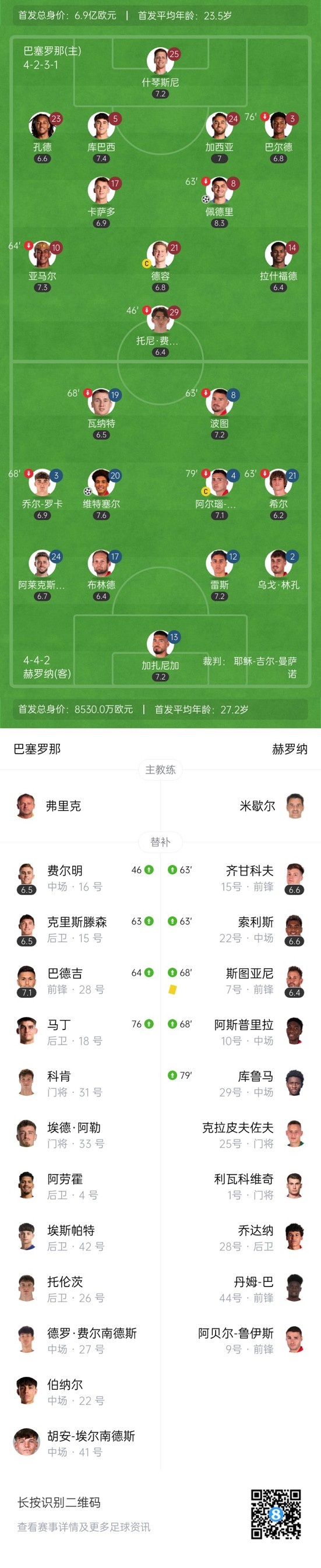 第3分钟,巴萨左路端定位球机会,亚马尔直接打门被加扎尼加扑出。↓