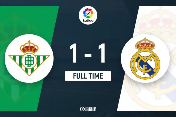 全场比赛结束,皇马1-1贝蒂斯。