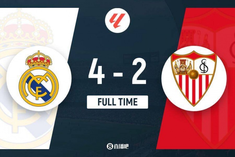 下半场伤停补时4分钟,最终皇马4-2塞维利亚。