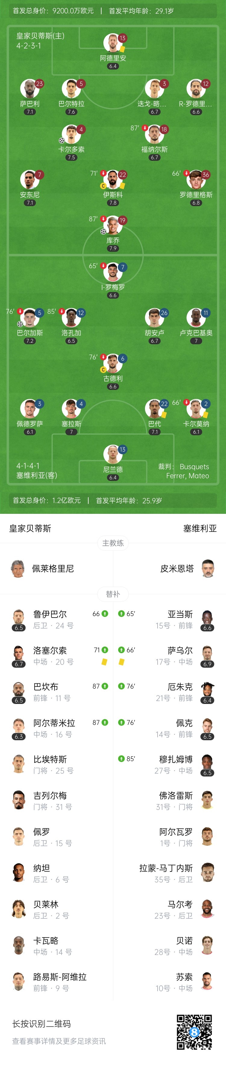第25分钟,伊斯科转移右路队友福纳尔斯,后者送出直塞到禁区,萨巴利面对补防冷静将球挑回门前,卡尔多索跟进凌空爆射破门,贝蒂斯1-1扳平↓