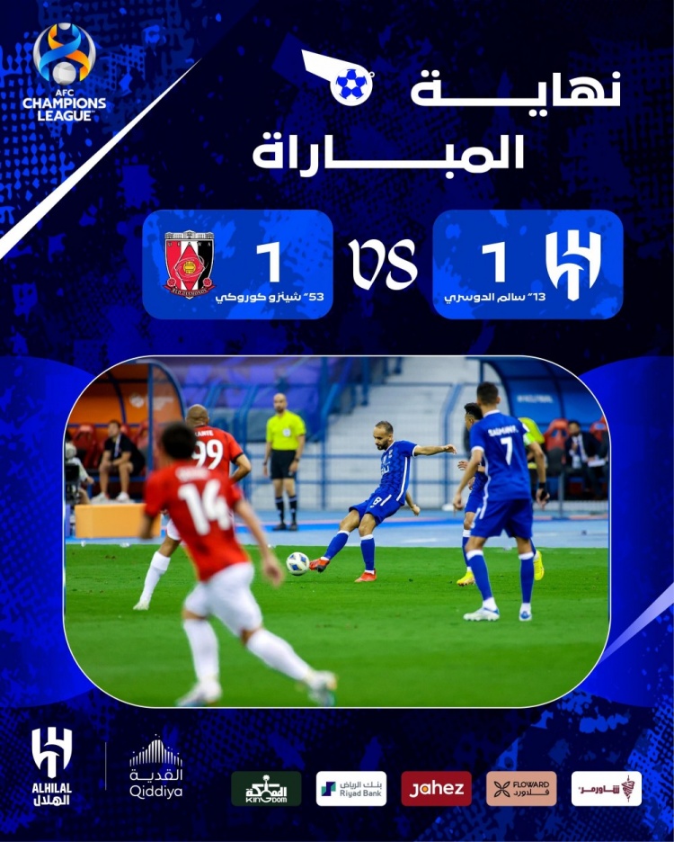 第53分钟,浦和扳平比分!浦和后场直塞布莱希解围击中自家立柱,兴梠慎三跟进抽射破门,利雅得新月1-1浦和红钻。↓
