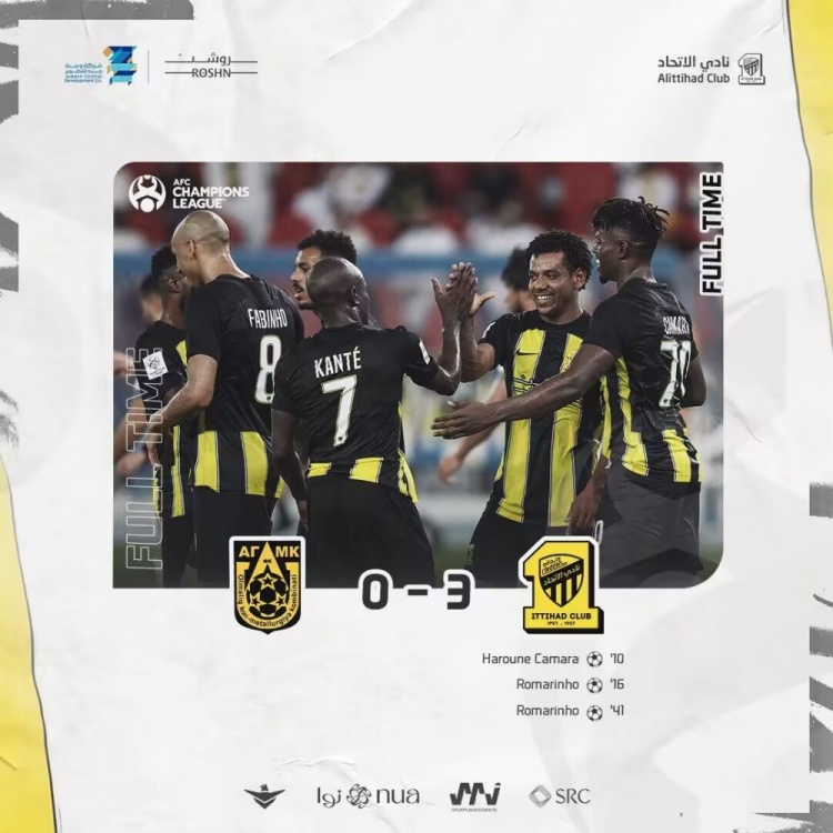 全场比赛结束,吉达联合3-0阿尔马雷克。