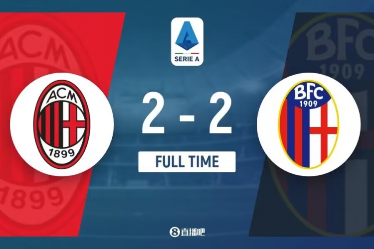 下半场补时5分钟。最终全场比赛结束,米兰2-2博洛尼亚。