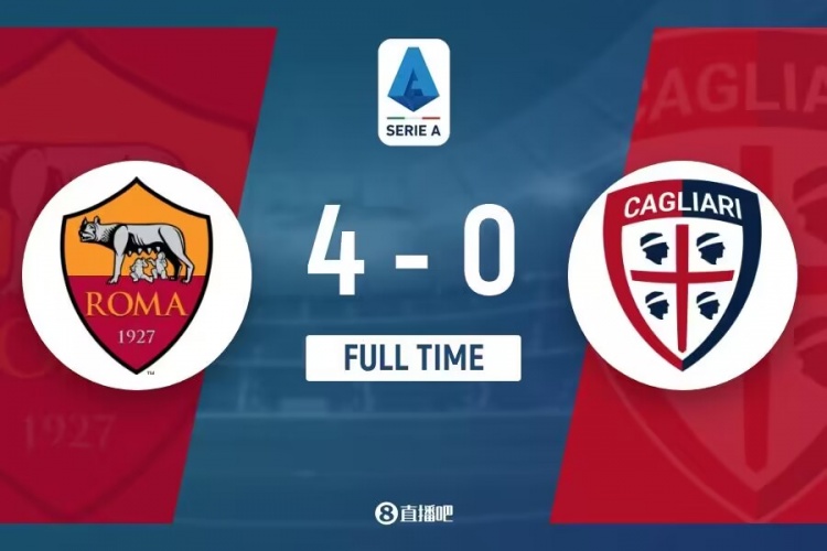 全场比赛结束,罗马4-0卡利亚里。