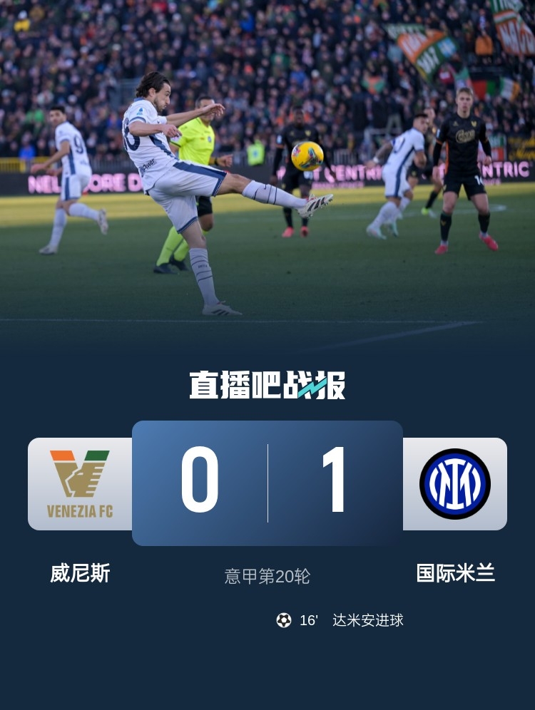 1月12日讯 北京时间1月12日22时,意甲第20轮,国米做客皮埃路易吉-彭佐球场对阵威尼斯。上半场,达米安首开纪录。国米半场1-0领先威尼斯。下半场双方均无建树。最终国米1-0击败威尼斯,取得联赛6连胜,升至积分榜第二。