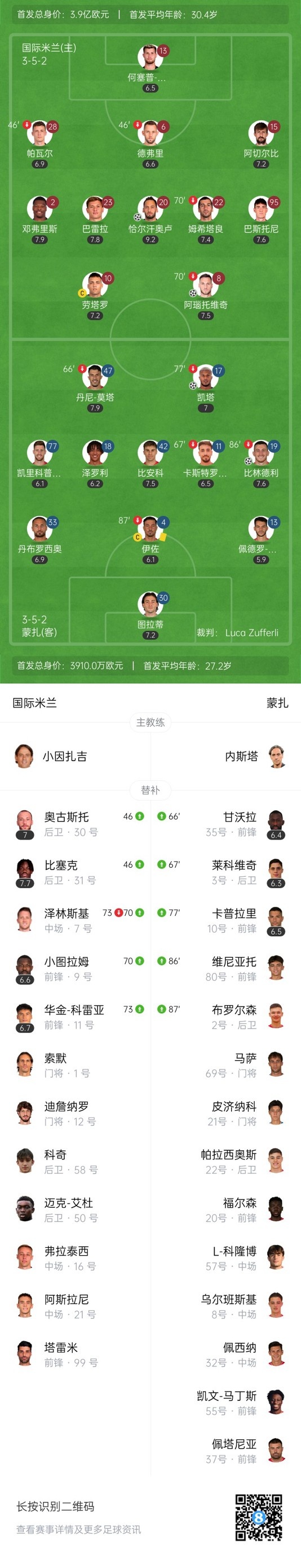 3月9日讯 北京时间3月9日03:45,意甲联赛第28轮国米迎战蒙扎的比赛在梅阿查球场进行,上半场劳塔罗破门被吹无效,图拉蒂献精彩扑救,比林德利单刀推射首开记录,凯塔远射世界波扩大比分,阿瑙托维奇头球扳回一城,下半场恰尔汉奥卢凌空抽射扳平比分,劳塔罗头球造乌龙,小图拉姆推射中柱,最终国米3-2逆转蒙扎先赛4分领跑。