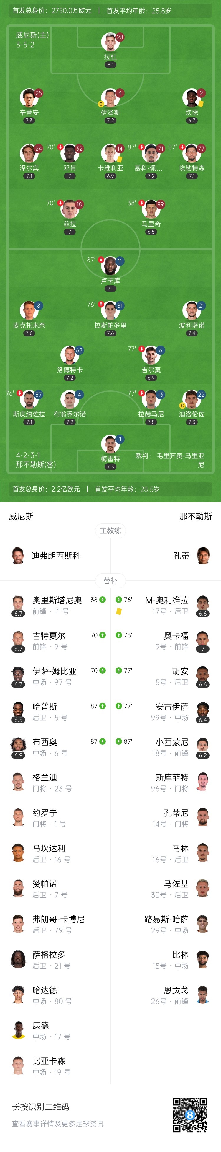 【双方首发及换人信息】