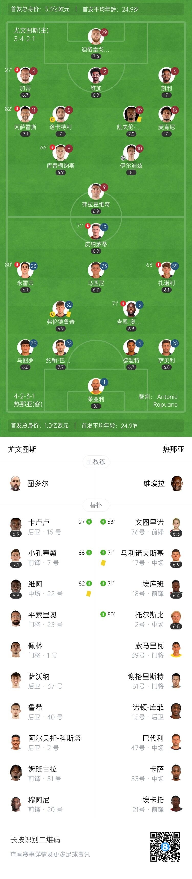 全场比赛结束,尤文图斯1-0热那亚。