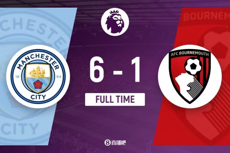 第88分钟,鲍勃右路传中到门前,阿克头球冲顶入网,曼城6-1伯恩茅斯!↓