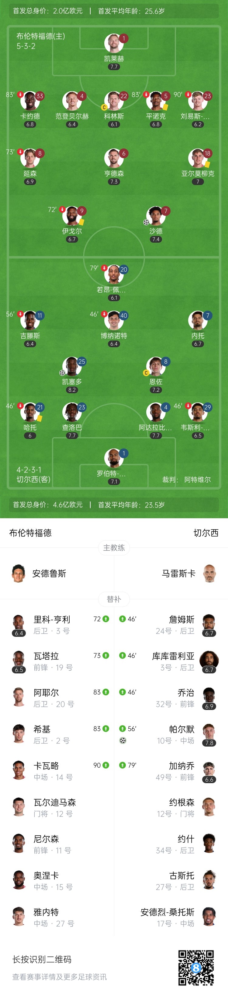 第90+4分钟,布伦特福德前场左路大力边线球扔到禁区造成乱战,后点卡瓦略包抄入网,切尔西2-2遭绝平↓