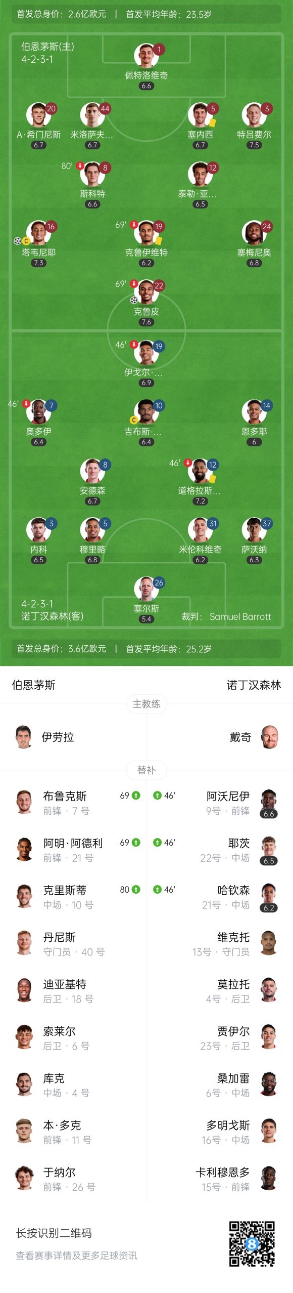 下半场补时3分钟,伯恩茅斯2-0森林。