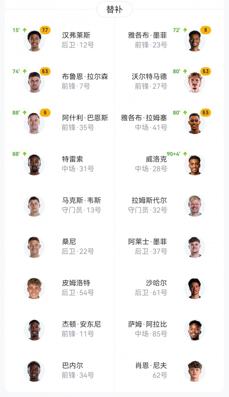 【双方首发及换人信息】