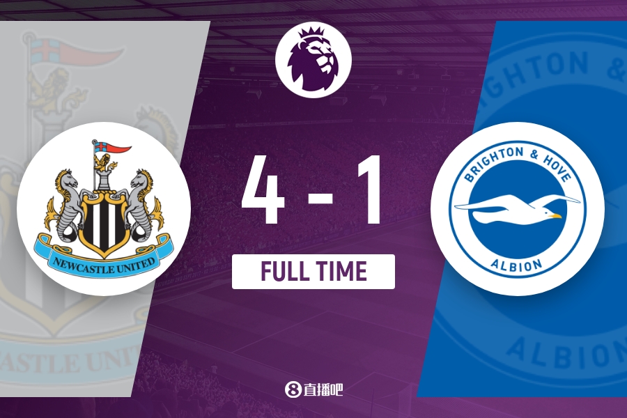 全场比赛结束,纽卡4-1布莱顿。