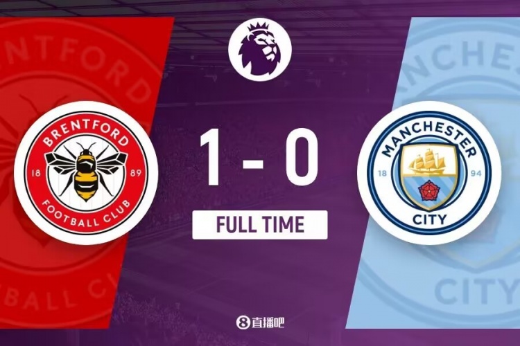 下半场补时5分钟。最终全场比赛结束,最终布伦特福德主场1-0曼城。