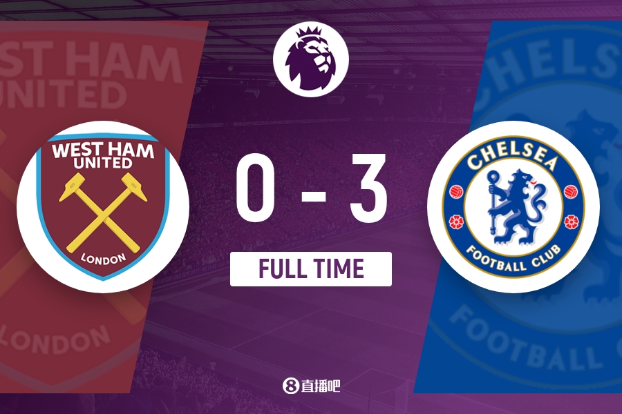 全场比赛结束,最终切尔西3-0西汉姆。