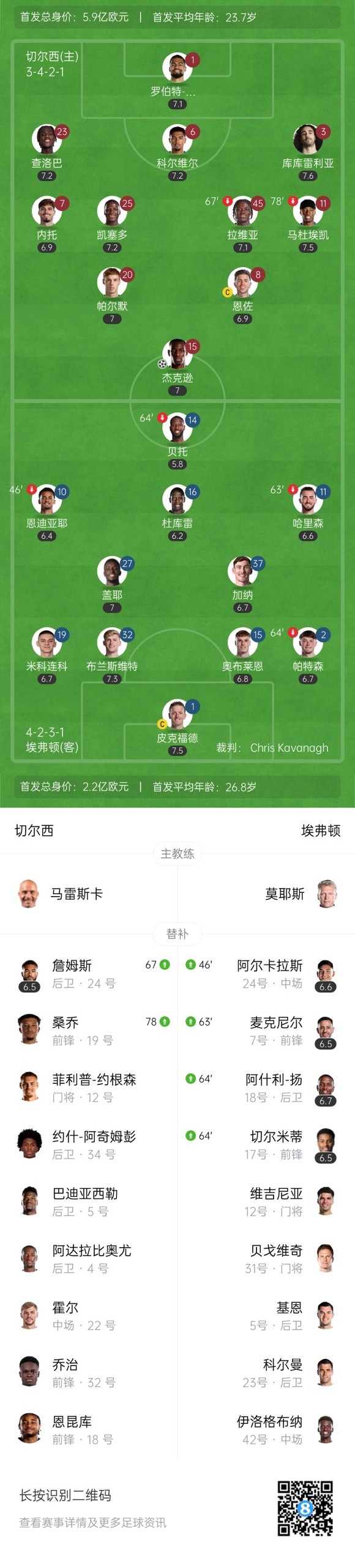 下半场补时4分钟,切尔西1-0埃弗顿。