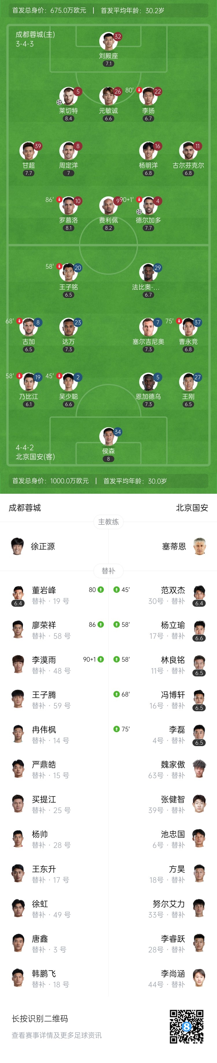 7月26日讯 北京时间19:35,中超第18轮成都蓉城vs北京国安,比赛在五粮液体育场中心打响!上半场,甘超助攻德尔加多打破僵局!费利佩头球造险。下半场,侯森多次神勇扑救;莱切特内切劲射破门。最终,成都蓉城2-0击败北京国安。国安遭遇中超2连败,先赛距榜首3分,跌至积分榜第3;蓉城距榜首4分居第4。