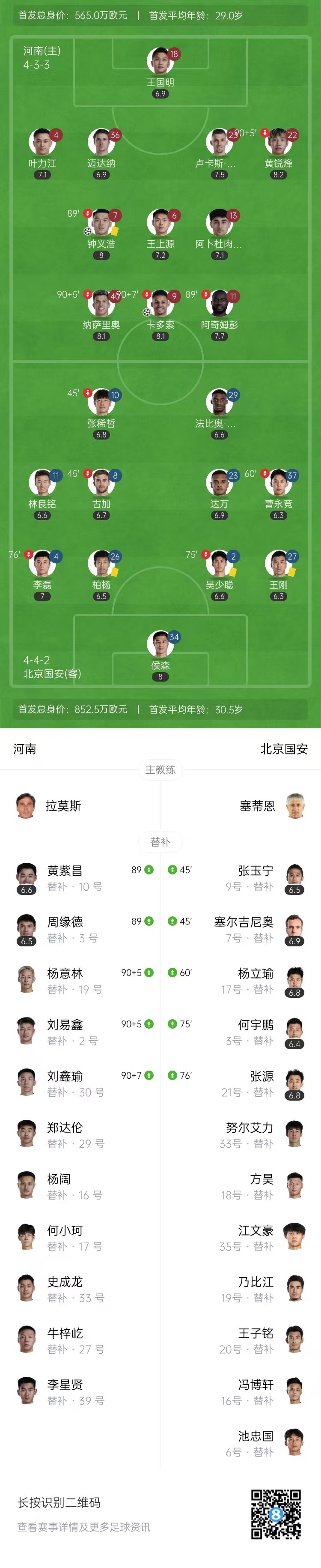 第39分钟,河南左路突破横传制造禁区混乱,钟义浩乱战中将球打进,随后他脱衣庆祝,河南1-0北京国安。↓