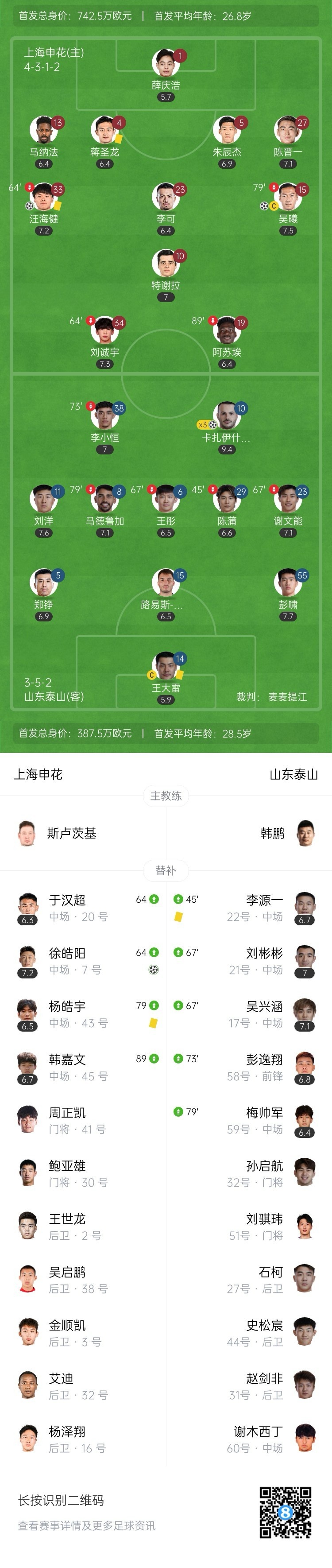 第85分钟,泰山再度扳平,薛庆浩后场出球失误被对手抢断,瓦科禁区线上打门得手上演帽子戏法,泰山3-3申花。↓