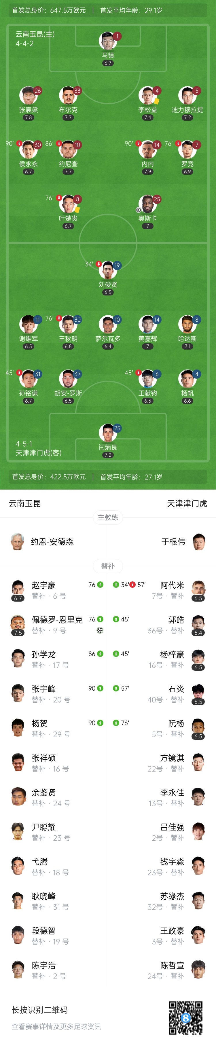 10月18日讯 北京时间20:00,中超第27轮云南玉昆vs天津津门虎。上半场,王献均送点,奥斯卡点射破门!下半场,恩里克头球破门扩大领先优势!最终,云南玉昆2-0击败天津津门虎,近6轮首胜!
